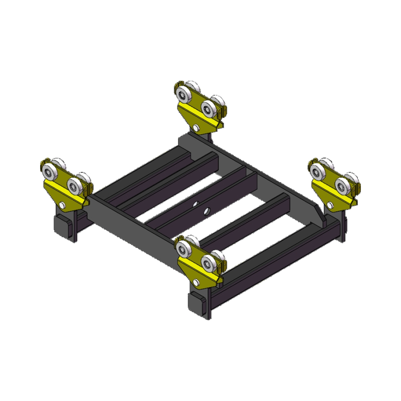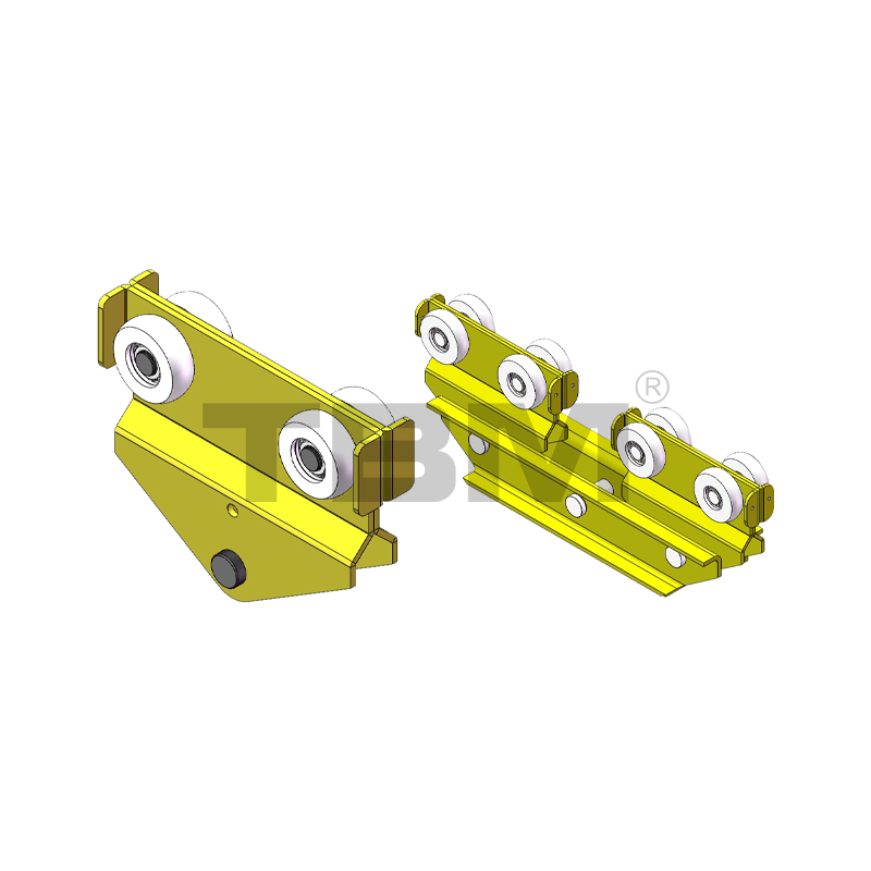█A főgerendás kocsit emelőszerkezetek, stb. felfüggesztésére használják. Kerekei nagy szilárdságú nylonból készülnek, és megfelelő lejtésűek, lehetővé téve, hogy illeszkedjenek a sín futófelületéhez, biztosítva a zökkenőmentes működést és az automatikus központosítást. A két végén hajlított szárnyak megakadályozzák, hogy a kocsi véletlenül leessen a pályáról, így biztosítva a teljes biztonságot.