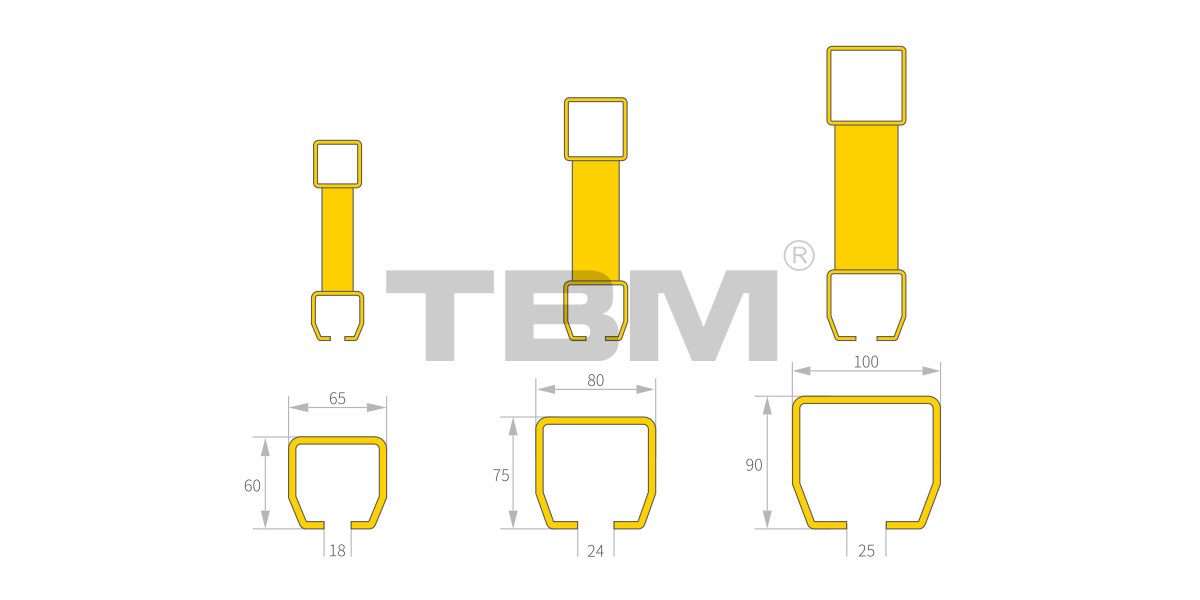 | Megjegyzés: A 60-as sorozat, a 75-ös sorozat és a 90-es sorozat a pálya keresztmetszeti magasságára vonatkozik. | ||||